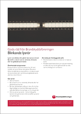 Blinkande lysrör Lysrör som blinkar eller glöder kan starta en brand. Byt därför ut lysrör som är utbrända, blinkande eller har glödande lysrörsändar. Ladda ner (pdf) |