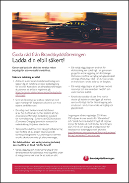 Elbilar Genom att ladda din elbil rätt minskar risken betydligt för ett eventuellt brandtillbud. Ladda ner (pdf) |