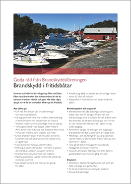Brandskydd i fritidsbåtar Sommar och båtliv hör för många ihop. Men med båtar följer också brandrisker, den största ombord är när du hanterar brännbara vätskor och gaser. Ladda ner (pdf) |
