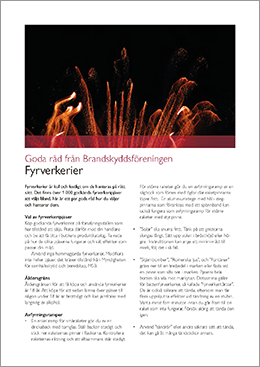 Fyrverkerier Fyrverkerier är kul och festligt om de hanteras på rätt sätt. Det finns över 1000 godkända fyrverkeripjäser att välja bland, här är ett par goda råd hur du väljer och hanterar dem. Ladda ner (pdf) |