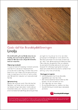 Linolja Om du behandlar golv med linolja måste du vara försiktig, eftersom linolja kan självantända. När arbetet är klart ska trasor och penslar behandlas med stor varsamhet. Ladda ner (pdf) |