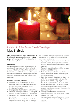 Ljus i juletid Jul är ljusens stora högtid. Tyvärr drabbas många av bränder under julmånaden och orsaken är många gånger de levande ljusen. Ta del av några enkla råd om ljusförnuft i juletid. Ladda ner (pdf) |