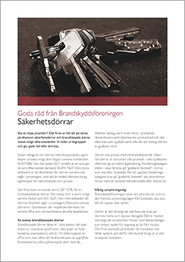 Säkerhetsdörrar Ska du köpa ytterdörr? Det finns en hel del att tänka på eftersom säkerhetsdörrar och brandklassade dörrar testas enligt olika standarder. Vi reder ut begreppen och ger goda råd inför ditt köp. Ladda ner (pdf) |