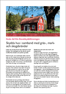 Skydda hus i samband med gräs-, mark- och skogsbränder Under vår och försommar ökar riskerna för markbränder. Torrt fjolårsgräs tar lätt eld och varje år inträffar flera bränder som sprider sig snabbt. |