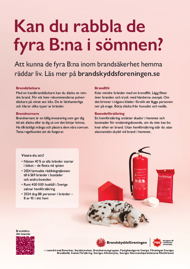 Bostadsbränder är vanligare än man tror: varje år sker cirka 24 000. Hemmet ska vara en trygg plats. Med ett brandsäkert boende skapar du en säkrare tillvaro för hela familjen och räddar liv. Nu lär vi hela Sverige om de fyra B:na i brandskydd!