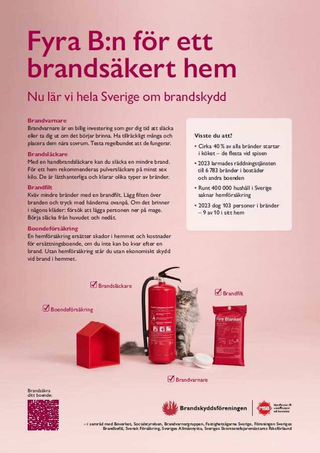 Bostadsbränder är vanligare än man tror: varje år sker cirka 24 000. Hemmet ska vara en trygg plats. Med ett brandsäkert boende skapar du en säkrare tillvaro för hela familjen och räddar liv. Nu lär vi hela Sverige om de fyra B:na i brandskydd!
