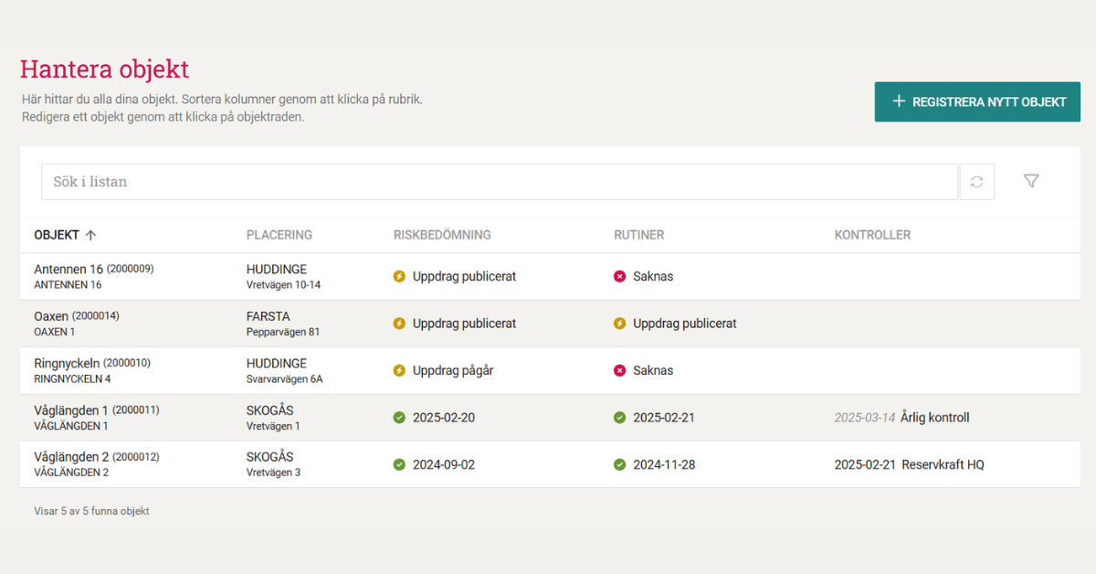 - Nu kan du registrera dina objekt och komma igång med fortlöpande kontroll.