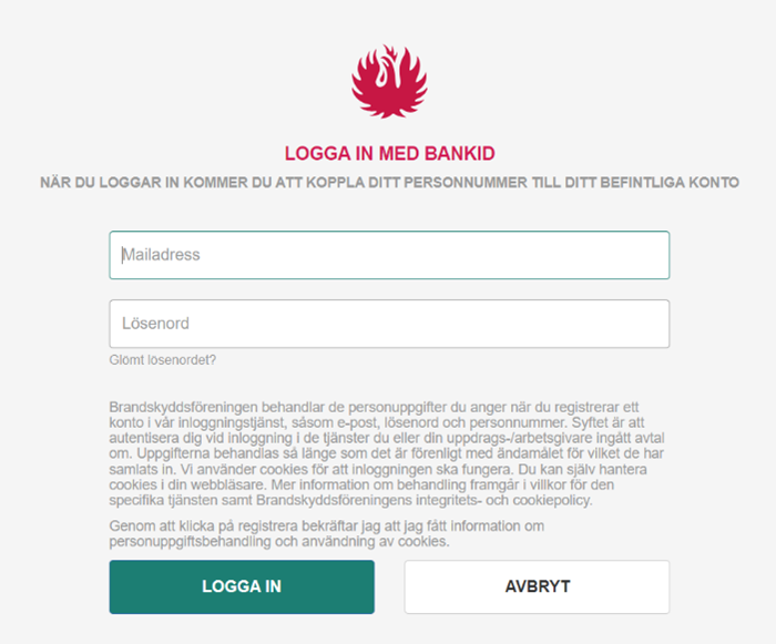 Om du sedan tidigare har ett konto hos Brandskyddsföreningen och vill kunna logga in med BankID, så behöver du följa nedan steg för att koppla på BankID till ditt befintliga konto.