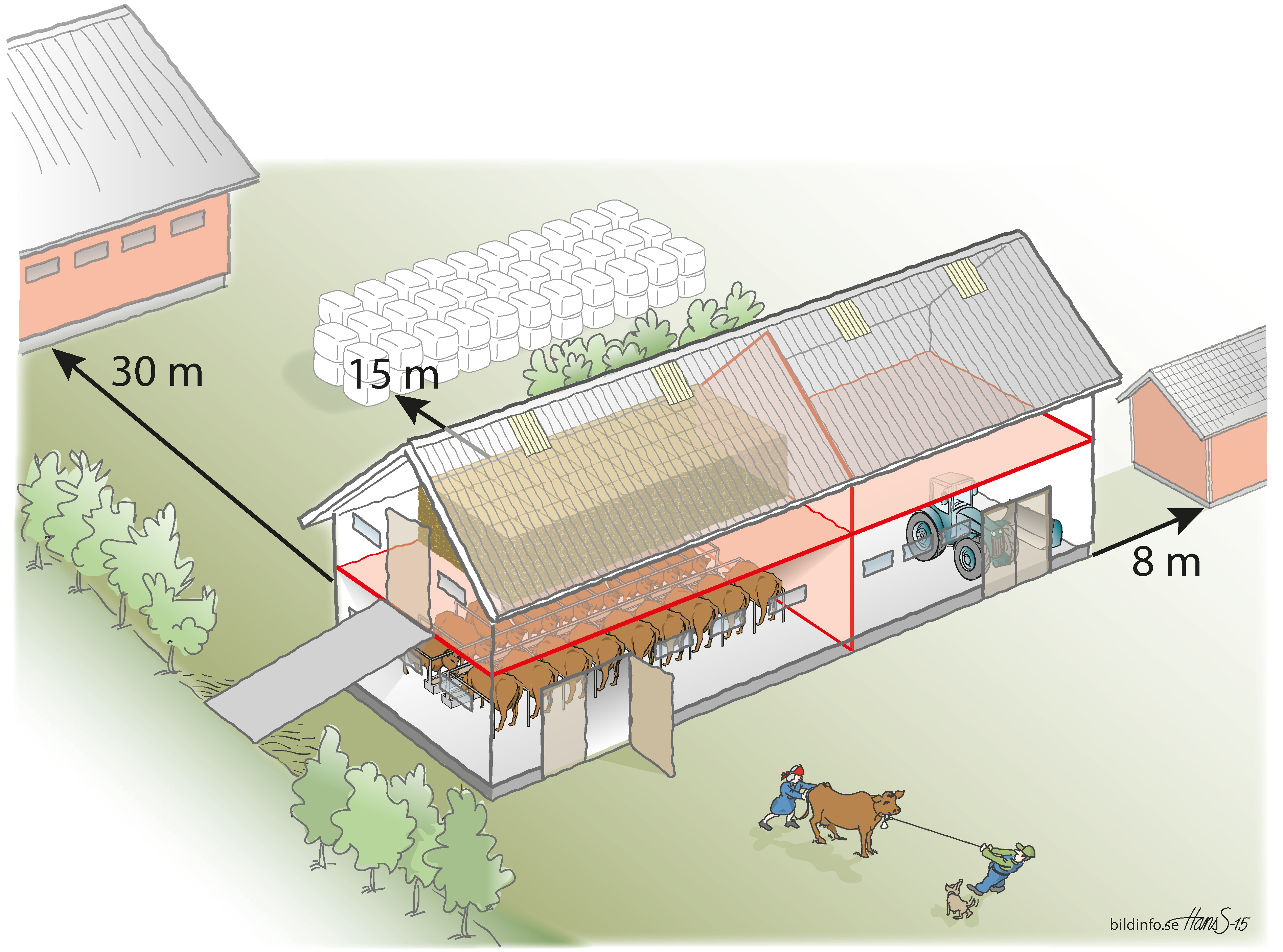 För att underlätta bedömningen av brandbelastningen i olika djurstall finns det i nedanstående Excelfil olika exempel som baseras på verkliga djurstall. Användaren kan redigera ingående data så att det motsvarar djurstall som ska beräknas. Ladda ner Excelfil för beräkning av brandbelastning i djurstall.