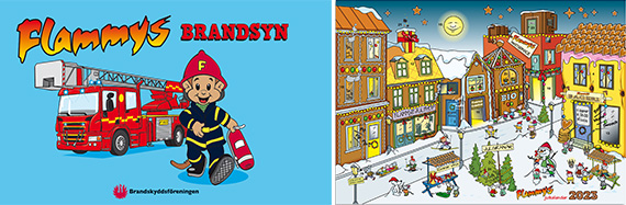 Vi delar även ut över 100 000 julkalendrar till barn varje år. Bakom varje lucka finns det tips och uppmaningar som barnen kan följa för att brandsäkra sitt hem. Läs mer om Flammy