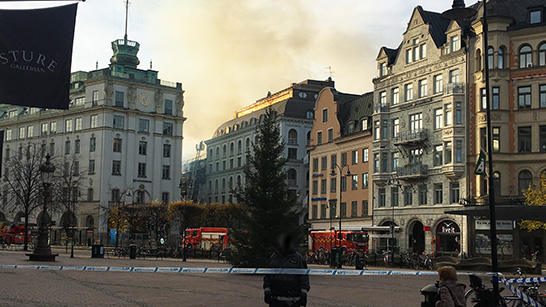 Anders Öberg och Staffan Hjelm, båda restvärdeledare i Stockholm för Brandskyddsföreningen Restvärderäddning, har arbetat i två hela dagar med att ta hand om följdskadorna, sanera, ta kontakt och hjälpa de drabbade samt även påbörjat arbetet med att återställa allt till normal verksamhet efter den stora och förödande branden vid Stureplan i Stockholm.