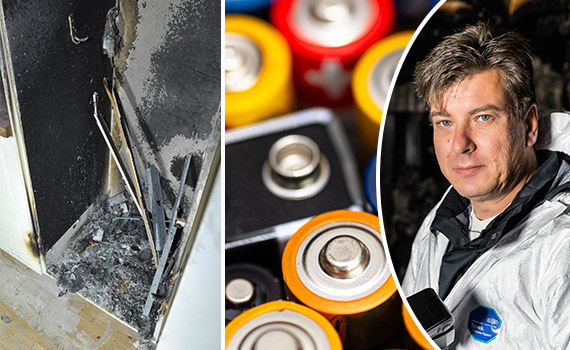 – Knappcellsbatterierna sprätter iväg när de börjar brinna med en väldig kraft, vilket sprider branden ännu fortare. Kraften i vissa typer av större celler kan vara så stor att de flyger rakt igenom inkapslingar av plåt eller gipsväggar i ett rum, vilket förklarar styrkan i ett brinnande, flygande batteri, berättar Michael.