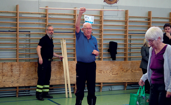 – Till exempel får de äldre gå på en mjuk matta med riskuddar under, så att golvet blir ojämnt. Då gäller det att hela tiden korrigera och spänna de muskelgrupper som krävs.