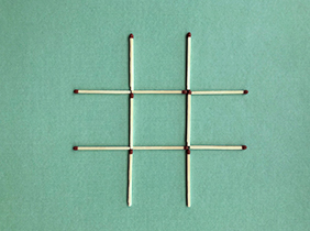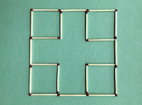 Tändsticksproblem #1 Flytta två tändstickor så att det bildas sju kvadrater.