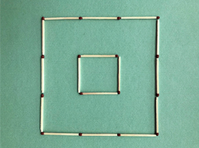 Tändsticksproblem #2 Flytta fyra stycken tändstickor så att det bildas tre kvadrater.