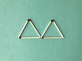 Tändsticksproblem #4 Flytta tre stycken tändstickor så att det bildas sex små och två stora trianglar.