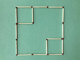 Flytta fyra stycken tändstickor så att det bildas tre kvadrater.