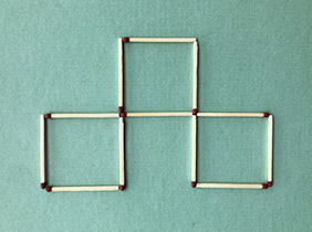 Flytta tre av tändstickorna så att det bildas tre lika stora kvadrater.