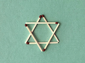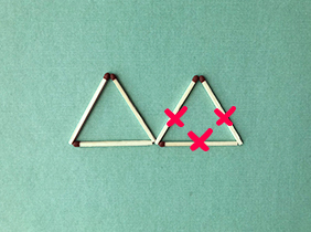 Flytta tre stycken tändstickor så att det bildas sex små och två stora trianglar.