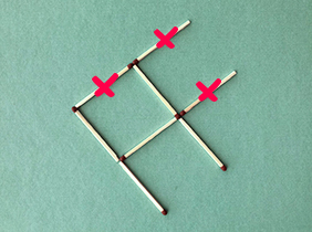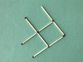 Det här ska föreställa en fisk. Flytta tre tändstickor så att fisken simmar åt höger istället för vänster.