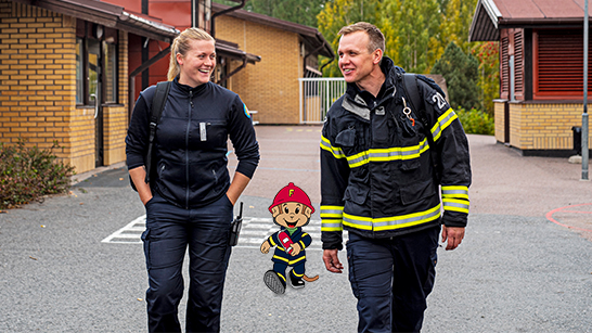Ett tjugotal andraklassare sitter i ett klassrum i Falun och lyssnar nyfiket på brandmannen Johan Israelsson. Han presenterar sig själv och kollegan Julia Åberg från Räddningstjänsten Dala Mitt, och frågar eleverna om de vet vad räddningstjänsten gör. Flera uppräckta händer viftar ivrigt runt om i klassrummet.