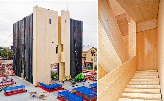 Idag byggs de flesta träbyggnader i korslimmat trä. Martinsons, som ligger strax utanför Skellefteå, har tillverkat och monterat de block som bygger upp kulturhuset. Det handlar om cirka 10 000 kubikmeter korslimmat trä och 2 200 kubikmeter limträ till stommen. Alla träytor behandlas så att de klarar ytskiktskraven. Produktionen av alla moduler till hotelldelen tillverkas lokalt av företaget Derome.