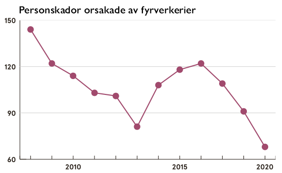 Har vad vi tänder eld på under nyårsfirandet förändrats genom åren? Många minns säkert hur smällare och raketer kunde smälla i flera veckor runt nyåret, men den tiden är förbi. Självsanering inom fyrverkeribranschen och restriktioner har begränsat vad som får säljas och när det får skjutas. I dag krävs tillstånd för inköp och särskild utbildning för smällare, eller bangers som de ofta kallas, och för raketer med styrpinne. De här förändringarna har gjort skillnad i statistiken. Antalet bränder och antalet personskador orsakade av fyrverkerier har stadigt sjunkit under de senaste åren. Sett till den bakgrunden är det lätt att tro att alla skulle vara nöjda, men i dag är det flera kommuner som vill införa ytterligare restriktioner på grund av problem med fyrverkerier.