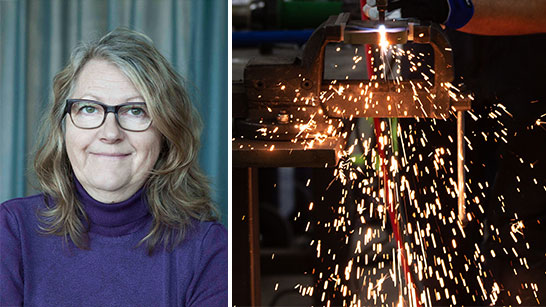 Pia Ljunggren och en bild på gnistbildning vid svetsning